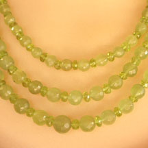 Three Strand 8 mm Peridot Beads with Faceted Peridot Spacers